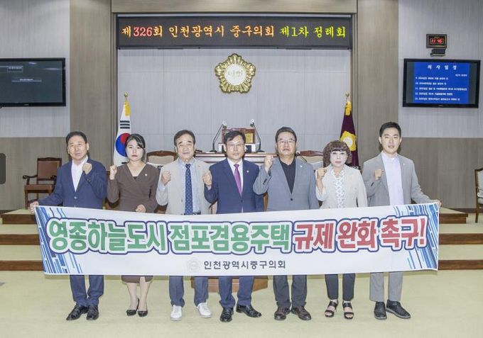 미디어라이프 중부신문 이건영 기자 | 중구의회는 30일 본회의장에서 ‘영종하늘도시 점포겸용주택 규제 완화 ’를 촉구하는 성명서를 발표했다.