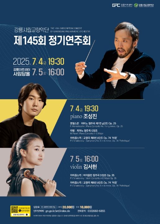 미디어라이프 중부신문 이건영 기자 | 강릉시립교향악단은 오는 7월 4일 19시 30분, 7월 5일 16시 강릉아트센터 사임당홀에서 제145회 정기연주회를 선보인다.