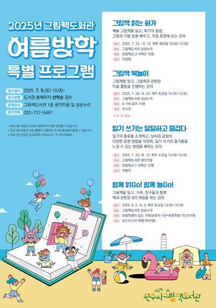 미디어라이프 중부신문 이건영 기자 | 원주시 그림책도서관은 여름방학을 맞아 오는 7월 22일부터 8월 23일까지 지역 아동과 가족들을 위한 ‘2025년 그림책도서관 여름방학 특별 프로그램’을 운영한다.