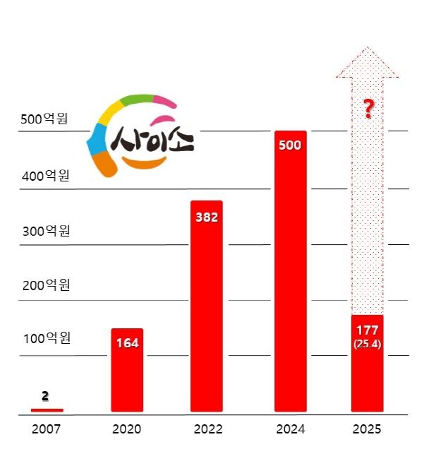 지난해 매출 500억을 돌파한 사이소는 올해 5월까지 회원은 12.4% 늘어난 27만명에 매출은 지난해 같은 기간 대비 43% 폭증한 206억원을 달성했다.