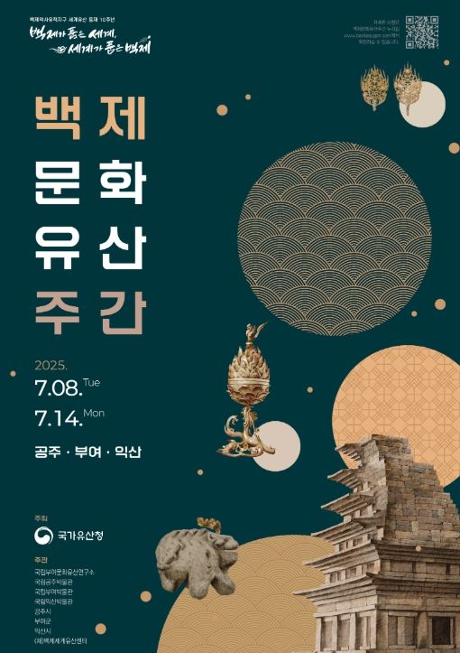 국가유산청과 부여군, 공주시, 익산시, 국립박물관 등 9개 기관이 함께 추진하는 ‘백제문화유산주간’은 올해 백제역사유적지구의 세계유산 등재 10주년을 기념하여 ‘백제가 품은 세계, 세계가 품은 백제’를 테마로 다채로운 프로그램을 제공할 예정이다.