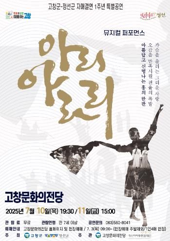 미디어라이프 중부신문 이건영 기자 | 고창문화의전당에서 고창군-정선군 자매결연 1주년 특별공연 ‘아리아라리’ 공연이 오는 10일(저녁 7시30분), 11일(오후 3시)에 이틀간 열린다.