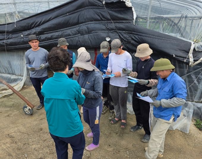 현장점검 기간 동안 외국인 계절근로자들이 이해하기 쉽도록 온열질환 예방 가이드를 다국어로 배포했다.