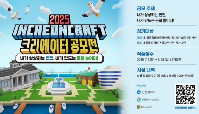 미디어라이프 중부신문 이건영 기자 | 인천광역시교육청은 인천시, 마이크로소프트(MS)와 공동으로 ‘2025 인천크래프트 크리에이터 공모전’을 7월 1일부터 9월 28일까지 개최한다고 밝혔다.