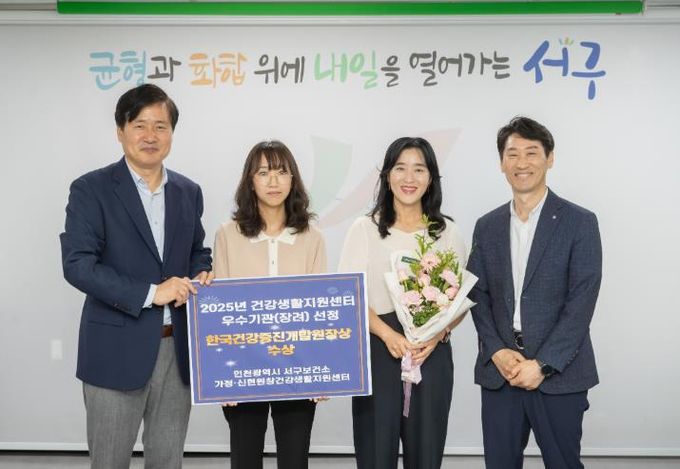 미디어라이프 중부신문 이건영 기자 | 인천 서구 가정·신현원창건강생활지원센터는 지난 25일 보건복지부와 한국건강증진개발원에서 주관한 ‘2025년 건강생활지원센터 운영 성과대회’에서 2024년 건강생활지원센터 운영기관 102개소 중 인천에서 유일하게 우수기관(장려)으로 선정되어 한국건강증진개발원장 표창을 받았다고 1일 밝혔다.