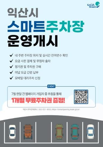 '익산시 스마트 주차 누리집' 또는 '카카오T 앱'을 통해 누구나 이용할 수 있다.