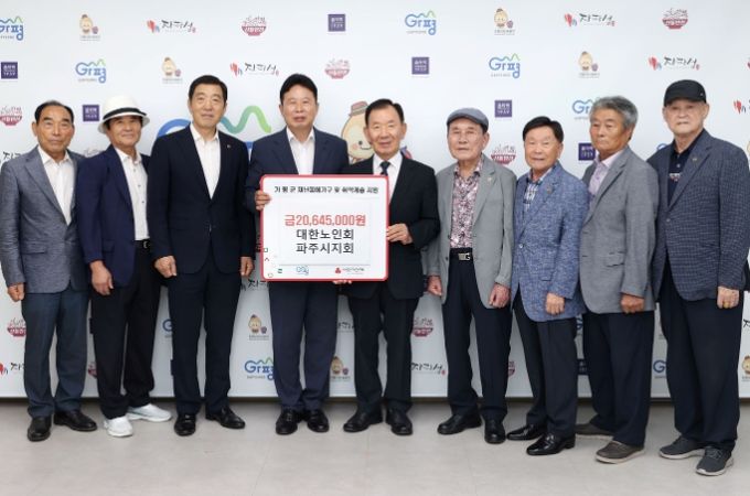 지난 22일 대한노인회 파주시지회 임원들은 가평군청을 찾아 이웃돕기 성금 2,060여만원을 전달했다. 이번 성금은 파주시 노인회원들이 자발적으로 모금한 것으로, 수해로 여가공간을 잃은 가평 지역 노인회원들을 돕기 위해 마련됐다.