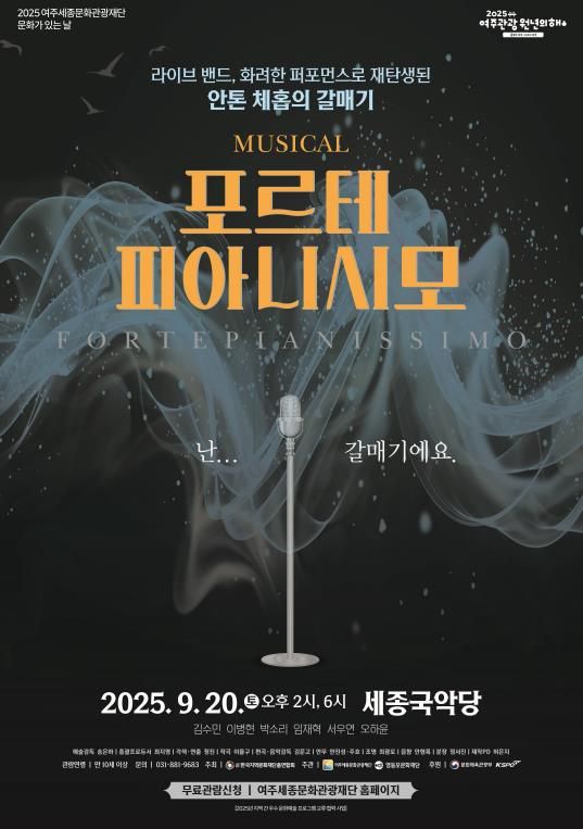 미디어라이프 중부신문 이종인 기자 | 여주세종문화관광재단이 오는 9월 20일 세종국악당에서 뮤지컬 ‘포르테 피아니시모’를 선보인다. 공연은 오후 2시와 6시, 총 2회에 걸쳐 무료로 진행된다.