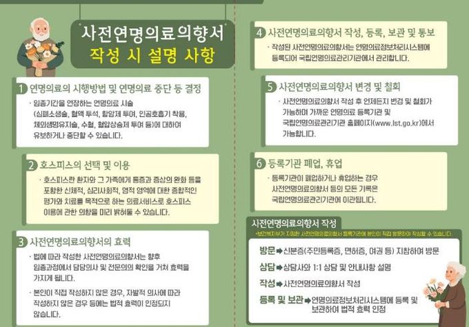 19세 이상 성인이라면 누구나 사전연명의료의향서를 통해 연명의료 중단에 관한 본인 의사를 사전에 문서로 남길 수 있다.