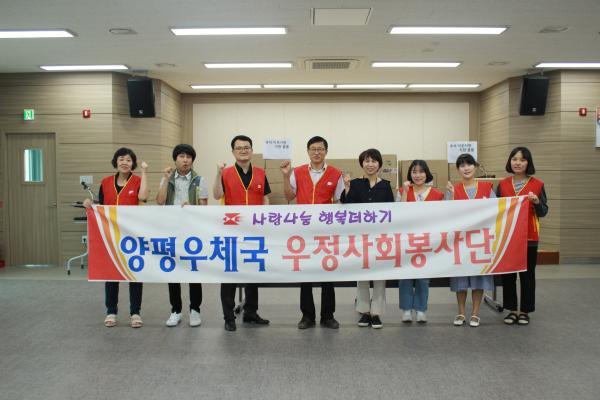 양평우체국 우정사회봉사단은 해마다 저소득 가정 신입생 교복 지원사업과 명절용품 지원사업, 사회복지시설 정기 자원봉사, 복지사각지대 저소득층 발굴 등 지역사회에 다양한 나눔실천과 사회공헌활동을 지속적으로 추진해 오고 있다.