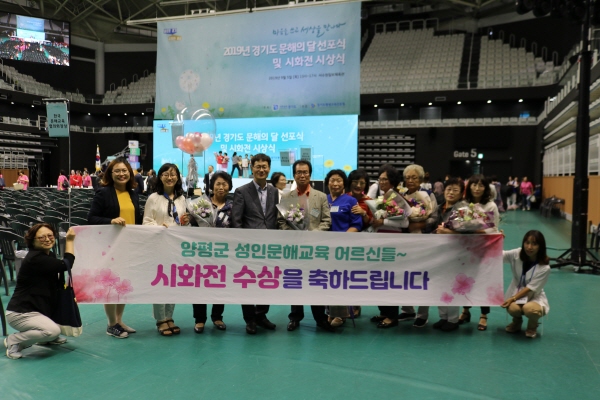경기도지사상에 양평읍주민자치센터 김정숙씨, 청운면주민자치센터 신정학씨가, 경기도교육감상에 다문초등학교 김금순씨, 한국문해교육협회장상 양수초등학교 박순남씨, 연수리여성경로회관 이복례, 전국야학협의회장상에 강하면주민자치센터 문애순씨, 전국기초문해교육협의회장상에 양평군 평생학습센터 서옥자씨, 청운면삼성리경로당 김소순씨, 전국야학협의회장상 노인복지관 유태정씨가 각각 수상의 영예를 안았다.