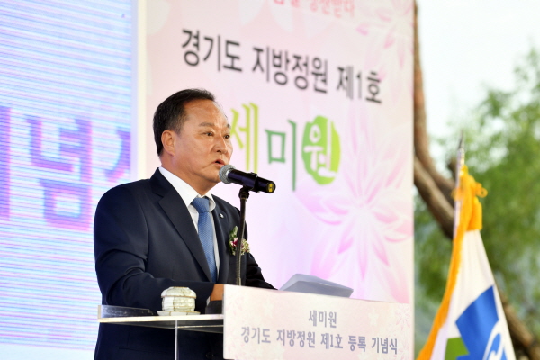 당초 이재명 경기도지사가 참석할 예정이었으나, 아프리카 돼지열병 대응 긴급회의로 인해 부득이하게 불참한 가운데 세계적인 수련 육종가인 태국 라자만갈라 대학 노프차이 박사 및 인근 지자체장들이 참석해 지방정원 1호 등록을 축하했다.
