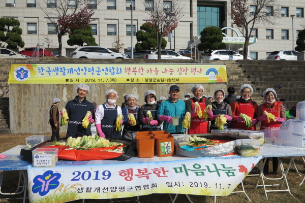 가공 및 식생활 교육의 산실 역할을 해온 양평군생활개선회는 그동안 익히고 닦아온 김치 담그기 솜씨를 발휘 하며 이날 담근 김치 180통과 김 180박스를 더해 지역 내 소외계층 180가구에 전달했다.