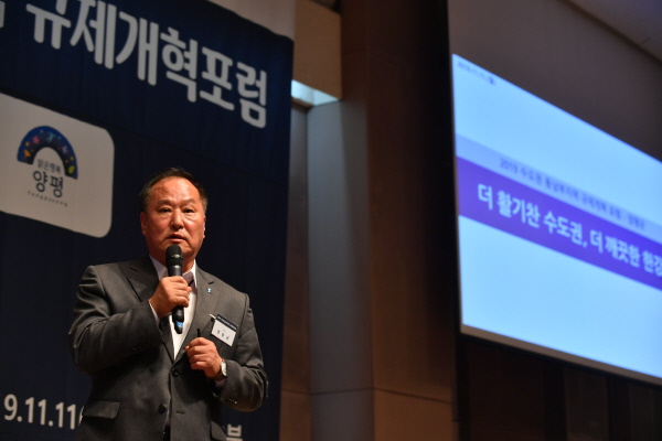 정동균 양평군수는 ‘더 활기찬 수도권, 더 깨끗한 한강’을 제목으로 기조발표를 진행했다.