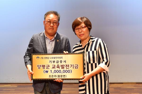 또한 용문면에 거주하는 조은주 씨는 “양평군에 거주하는 한 군민으로서 양평군 인재양성을 위해 학생들에게 조금이나마 도움을 주고자 기탁하게 됐다”고 말했다.