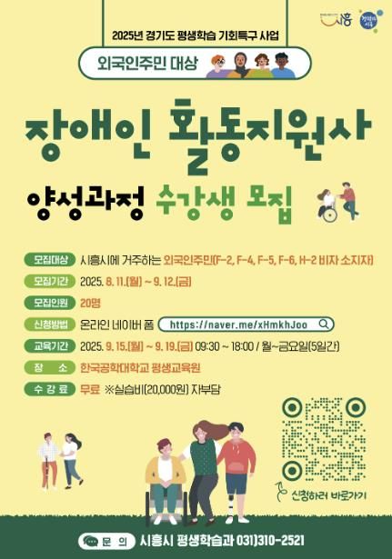 미디어라이프 중부신문 이종인 기자 | 시흥시는 2025년 경기도 평생학습 기회특구 사업의 일환으로, 외국인주민의 안정적인 지역 정착과 취업을 지원하기 위해 ‘장애인활동지원사 양성과정’을 개설하고 오는 9월 12일까지 수강생을 모집한다.