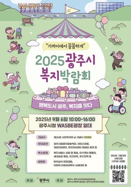 미디어라이프 중부신문 이종인 기자 | 광주시는 오는 9월 6일 광주시청 WASBE광장에서 ‘가까이에서 꼼꼼하게, 2025 광주시 복지박람회’를 개최한다고 29일 밝혔다.