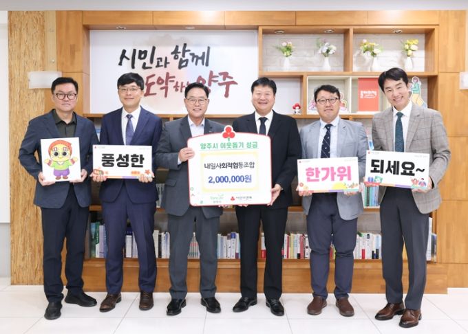 미디어라이프 중부신문 이도경 기자 | 양주시가 지난 30일 내일사회적협동조합(이사장 송영진)로부터 성금 200만원을 기탁받았다.