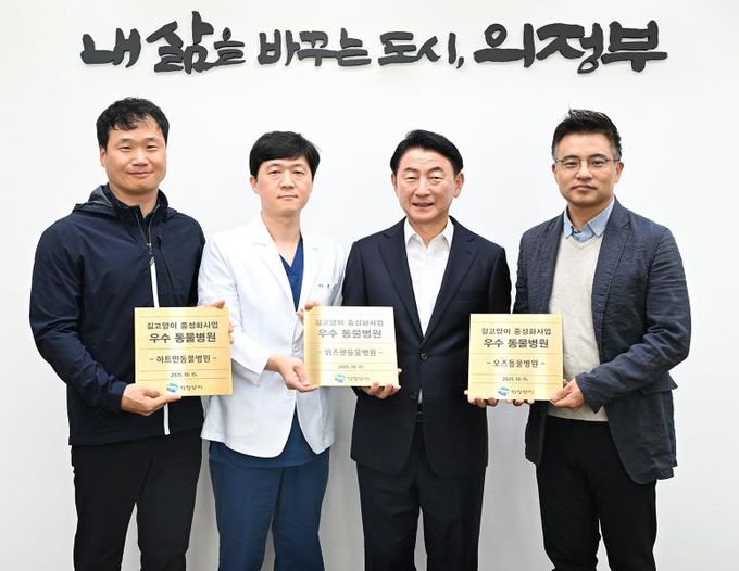 미디어라이프 중부신문 이석호 기자 | 의정부시는 10월 15일 시장실에서 ‘길고양이 중성화사업 우수 동물병원’ 인증패 전달식을 열고, 사업에 적극 참여해 지역 동물복지 문화 확산에 기여한 동물병원을 격려했다.