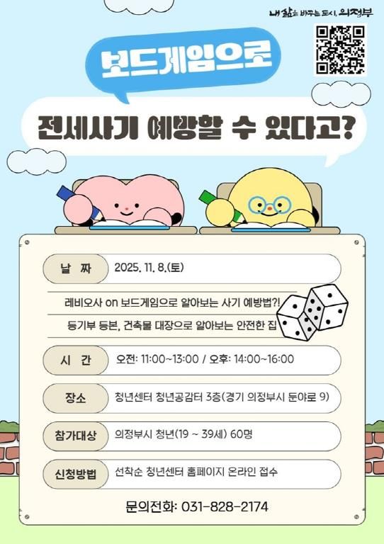 미디어라이프 중부신문 이석호 기자 | 의정부시는 11월 8일 운영 예정인 전세사기 피해 예방 교육용 보드게임 프로그램 ‘레비오사 보드ON’에 참여할 청년을 모집한다.