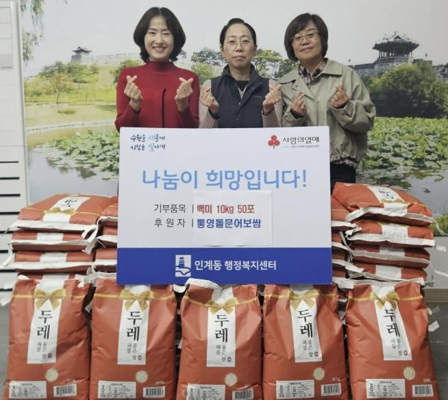 미디어라이프 중부신문 이종인 기자 | 지난 10월 22일, 통영돌문어보쌈에서 인계동 행정복지센터에 백미 10kg 50포를 전달했다.