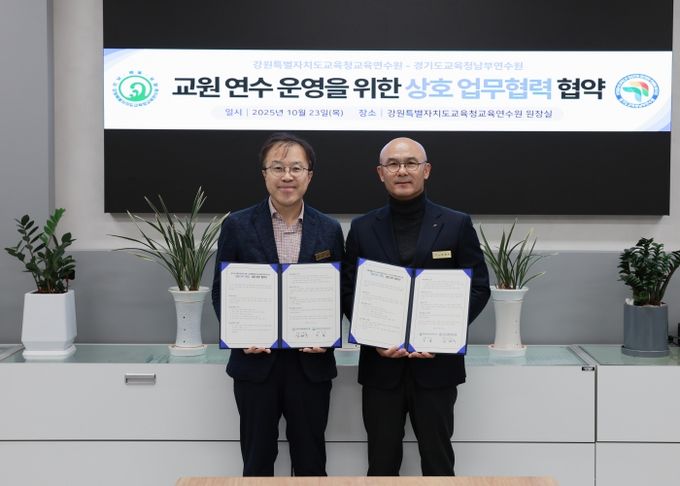 미디어라이프 중부신문 이종인 기자 | 경기도교육청남부연수원이 23일 강원특별자치도교육청교육연수원과 교원 연수 협력을 위한 업무협약(MOU)을 체결했다.
