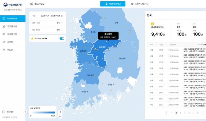 김연상 국립소방연구원 원장은 “이번 데이터 분석 도구가 시도 안전관리 담당자들에게 사고 사례 탐색과 안전 교육 자료로 적극 활용되기를 기대한다”며, “향후 현장 의견을 지속적으로 반영하여 데이터 기반의 과학적 안전관리 체계 구축에 최선을 다하겠다”고 밝혔다.
