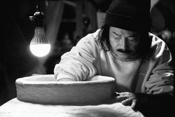 그는 인위적 장식이나 완벽을 거부하고, 자연과 인간이 공존하는 흔적 그대로를 쫒아 우주의 잔영을 흙 속에 남긴다.