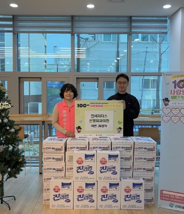 미디어라이프 중부신문 이석호 기자 | 의정부시 신곡1동주민센터는 11월 27일 연세리더스신경외과의원이 저소득 취약계층을 돕기 위해 라면 36상자를 기탁하며 ‘100일간 사랑릴레이 배턴 잇기’에 동참했다고 밝혔다.