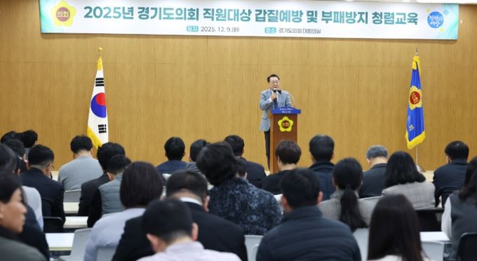 미디어라이프 중부신문 이종인 기자 | 경기도의회는 9일 오전 의회 대회의실에서 전 직원을 대상으로 ‘갑질예방 및 부패방지 청렴교육’을 실시했다.