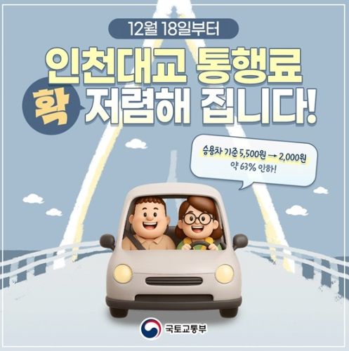 미디어라이프 중부신문 이도경 기자 | 12월 18일부터 인천대교 통행료 확 저렴해 집니다!