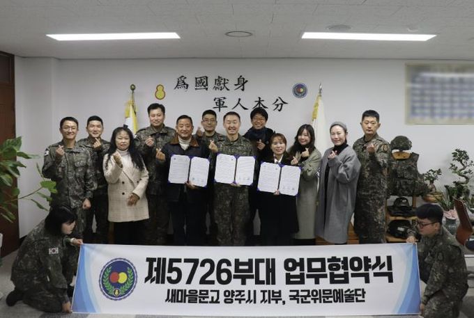 미디어라이프 중부신문 이도경 기자 | 새마을문고 양주시지부는 지난 12월 19일, 육군 제5726부대에서 군 장병들의 독서문화 확산과 인문학적 소양 증진을 위한 업무협약(MOU)을 체결했다고 밝혔다.