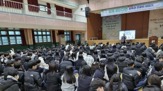 이날 강연에는 '우리가 만난 청소년'의 저자인 전종수 유스트로우 대표를 초빙하여 “함께 걷는다면 – 회복과 연결의 이야기”를 주제로 2~4교시에 걸쳐 전곡중학교 1~3학년 전교생을 대상으로 실시했다. ▲친구들과의 관계 속에서 겪는 갈등과 감정 이해하고 관계 맺기 ▲어려움이 있을 때 혼자 견디지 않고 도움을 요청하는 용기의 중요성 ▲내가 듣고 싶은 말과 내가 친구에게 해줄 수 있는 말 써보기 등을 중심으로 진행됐다.