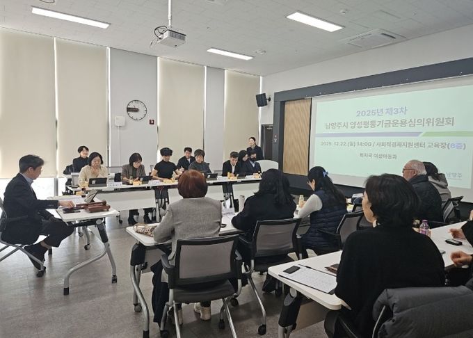 미디어라이프 중부신문 김민정 기자 | 남양주시는 22일 남양주사회적경제지원센터에서 ‘2025년 제3차 남양주시 양성평등기금운용심의위원회 및 성과공유회’를 개최하고, 올해 추진한 양성평등기금 지원사업의 성과를 공유하며 2026년도 사업방향을 논의했다고 밝혔다.
