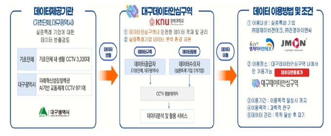 아울러 ‘데이터안심구역 기반 지자체 폐쇄회로 텔레비전(CCTV) 원본 데이터 활용 규제 유예제도(규제샌드박스) 실증 특례’를 통해 대구시 등에서 수집한 폐쇄회로 텔레비전(CCTV) 영상 원본데이터를 대구데이터안심구역에 개방하고, 관련 기업이 고성능 인공지능 모델 개발을 위한 학습 데이터로 활용할 수 있도록 할 예정이다.