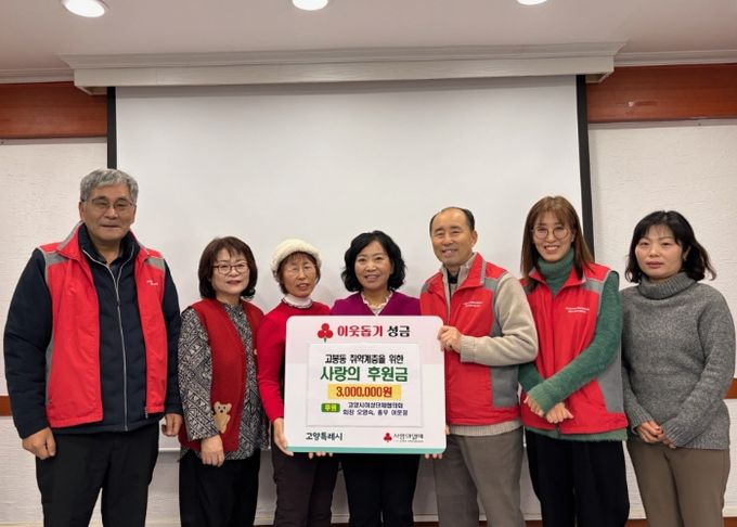 차형수 고봉동장은 “어려운 시기에 따뜻한 나눔을 실천해 주셔서 더욱 뜻깊다”며 “전해주신 성금은 도움이 절실한 주민들을 위해 소중히 사용하겠다”고 전했다.