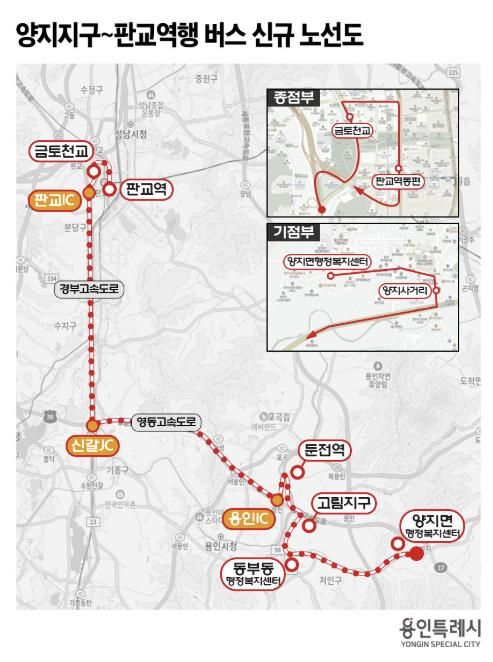 미디어라이프 중부신문 이종인 기자 | 용인 양지지구를 출발해 고림동과 둔전역을 거쳐 성남 판교역까지 운행하는 버스 노선이 확정됐다.