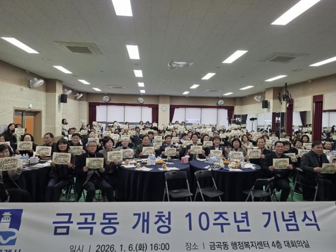 미디어라이프 중부신문 이종인 기자 | 2026년 개청 10주년을 맞은 권선구 금곡동은 지난 6일 지역구 의원과 주민 등 100여 명이 참석한 가운데 주민자치회 및 통장협의회와 함께 10주년 기념행사를 개최했다.