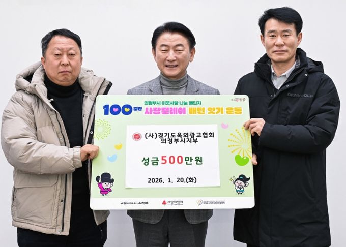 미디어라이프 중부신문 이석호 기자 | 의정부시는 1월 20일 (사)경기도옥외광고협회 의정부시지부가 ‘100일간 사랑릴레이 배턴 잇기’에 동참해 성금 500만 원을 기탁했다고 밝혔다.