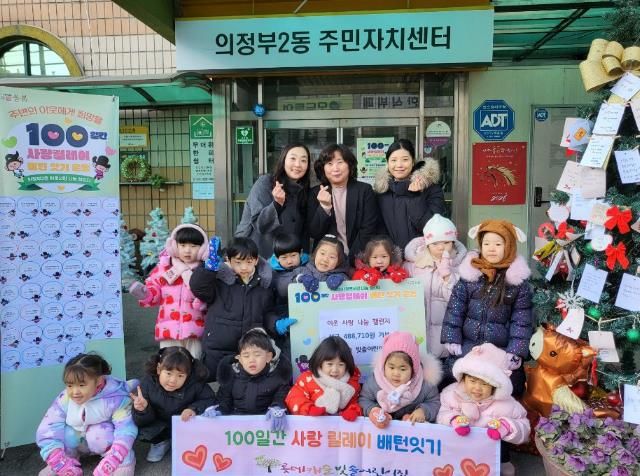 미디어라이프 중부신문 이석호 기자 | 의정부시 의정부2동주민센터는 1월 20일 롯데캐슬 빛솔 어린이집이 ‘100일간 사랑릴레이 배턴 잇기’에 동참해 취약계층을 위한 성금 48만8천710원을 전달했다고 밝혔다.
