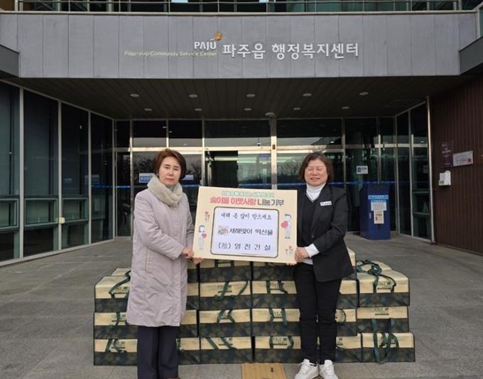 장연희 파주읍장은 “매년 이웃 돕기를 통해 소외계층에게 지속적으로 사랑의 온정을 전해주시는 영진건설에 깊이 감사드린다”라며 “기탁된 선물은 도움이 필요한 이웃들에게 정성껏 전달하겠다”라고 밝혔다.
