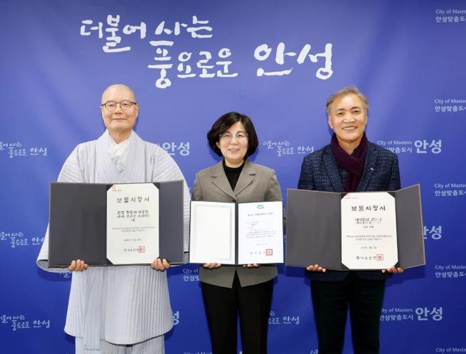 미디어라이프 중부신문 이종인 기자 | 안성시는 2026년 2월 5일 오후 4시 30분 안성시청에서 '안성 청원사 대웅전'과'예기집설'의 ‘보물’ 지정 그리고 '경책신공문'의 ‘도유형문화유산’ 지정에 따른 증서를 소유자 및 소유단체에게 전달하는 수여식을 개최했다.