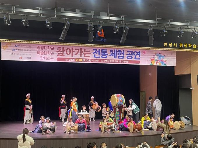 미디어라이프 중부신문 이종인 기자 | 안성시는 2월 10일 오전 10시 안성시평생학습관 2층 다목적실에서 열린 ‘찾아가는 전통 체험 공연 시즌 2 – 춤과 연희가 함께하는 무대’가 150여 명의 시민이 함께한 가운데 큰 호응 속에 성황리에 마무리됐다고 밝혔다.