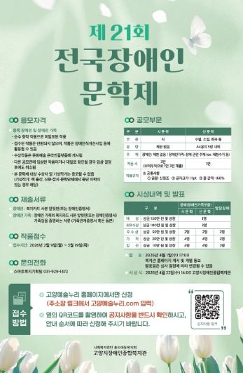 미디어라이프 중부신문 이종인 기자 | 고양시장애인종합복지관은 3월 19일까지 전국의 장애인 및 장애인 가족을 대상으로 ‘제21회 전국장애인문학제’ 작품 접수를 진행한다.