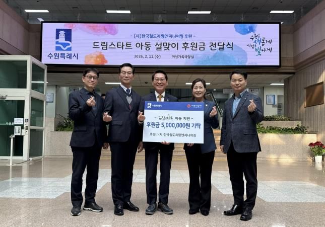미디어라이프 중부신문 이종인 기자 | (사)한국철도차량엔지니어링이 설을 맞아 “수원시 드림스타트 아동을 위해 사용해 달라”며 후원금 500만 원을 기부했다.