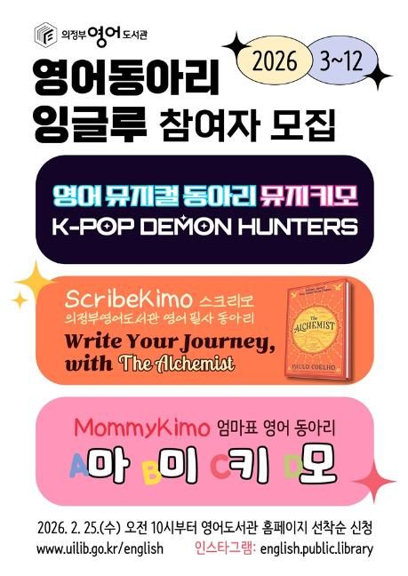 미디어라이프 중부신문 이석호 기자 | 의정부영어도서관은 3월부터 12월까지 영어 뮤지컬, 영어 원서 필사, 엄마표 영어 등 다양한 활동으로 구성된 영어 동아리 ‘잉글루(Englu)’를 운영해 시민의 영어 역량 강화와 영어학습 공동체 활성화를 추진한다.