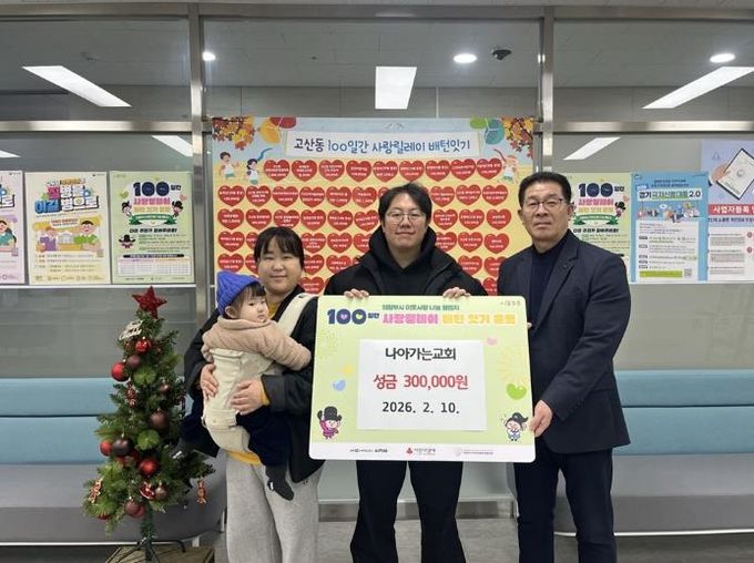 미디어라이프 중부신문 이석호 기자 | 의정부시 고산동주민센터는 2월 10일 고산동 소재 나아가는교회가 저소득층 지원을 위해 성금 30만 원을 기탁했다고 밝혔다.