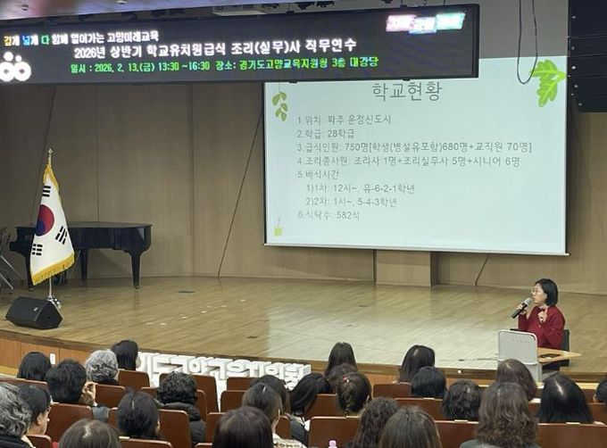 미디어라이프 중부신문 이종인 기자 | 경기도고양교육지원청은 오는 2월 13일, 2월 20일 이틀간 관내 공립유·초·중·고·특수·각종학교 189교 조리(실무)사와 영양(교)사를 대상으로 2026년 상반기 학교·유치원급식 담당자 직무연수를 실시한다고 밝혔다.
