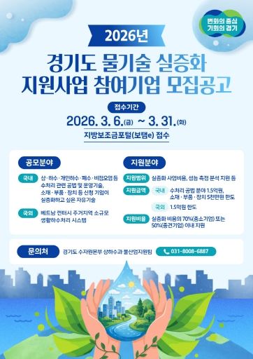 미디어라이프 중부신문 이종인 기자 | 경기도가 ‘2026년 경기도 물기술 실증화 지원사업’ 참여 기업을 공개 모집한다.