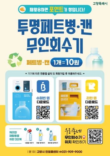 한편, 고양시는 무인회수기 외에도 재활용품 교환사업(종이팩·폐건전지 등을 종량제봉투로 교환), 고양 자원순환가게(재활용품 유가 보상) 등 시민 중심의 친환경 정책을 활발히 추진하고 있다.